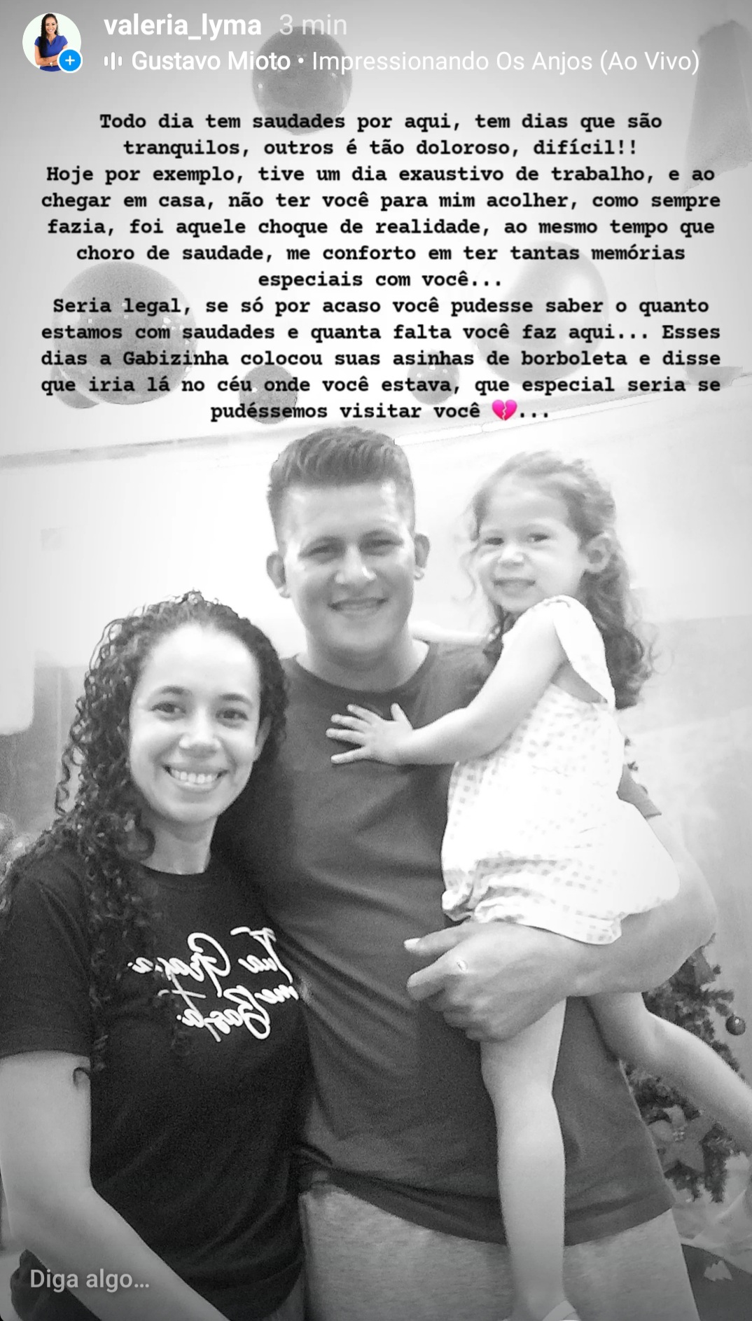 Existe uma dor difícil de descrever, uma dor que chega sem pedir licença e atravessa a alma, deixando tudo em silêncio. Lembro exatamente de como tudo aconteceu. Lembro da sua ligação falando do acidente, de quando cheguei ao hospital e vi aquele olhar de alívio ao me ver chegar, sua voz rouca perguntando pela Gabi… e, pela primeira vez em tantos anos, vi você chorar, com lagrimas nos olhos. Te abracei, beijei e disse que tudo ficaria bem. Talvez naquele instante você já soubesse o que poderia acontecer. Até o exato momento da sua partida, vivemos dias intensos: medo, angústia, oração e fé. Você foi forte até o fim, mas seu propósito nesta vida era até ali. Sou grata a Deus por termos tido a oportunidade de orar por você. Deste mundo não levamos nada — deixamos memórias — e você deixou um legado imenso. Galber Júnior foi uma pessoa extraordinária, dono de um coração gigante. Construiu amizades incontáveis e, mesmo na enfermidade, tocou e mobilizou muitos corações, pelos quais sempre terei gratidão. Ele foi tão especial que fez muita gente chorar; tantas vezes precisei consolar quem sofria pela sua partida, quando era eu quem mais precisava de consolo, as vezes parece até engraçado situação, o coração fica quentinho em ter certaza do quanto especial você foi e quantos histórias incrivéis sua filha vai ouvir. Ele realmente foi incrível aqui. Faço esta homenagem em nome do grande amor que construímos. Faço, em especial, pela Gabrielly, para que ela saiba o quão especial você foi — e continua sendo. Faço também para que familiares e amigos sintam honra por terem feito parte da sua história. Foram 29 anos de vida. Você tinha tantos sonhos, mas quem te conheceu sabe o quão intenso você era — nunca deixava nada para depois. Tantas paixões te moviam: a adrenalina, a velocidade, a pescaria, a caça, esse espírito aventureiro que era tão seu. Era amigo, parceiro, um pai exemplar. Nunca media esforços para ajudar quem precisasse. Uma das coisa que mais lhe admirava era seu coração bondoso, sempre disposto a acolher. Você tinha um carinho especial pelos idosos; adorava ouvir suas histórias e depois me contava com brilho nos olhos. Como você era especial, quanta saudade e falta está fazendo por aqui, para quem ficou… Sofro com a sua partida, mas meu coração é grato por cada instante, cada gesto e tudo o que edificamos ao longo da nossa história. Sim, saudade é o azar de quem teve muita sorte — e eu fui muito sortuda. Sinto sua falta em tudo, mas te encontro em tudo também. Você vive em mim, na nossa filha e em todos que foram privilegiados em te conhecer. Sempre será lembrado. Para sempre, Galber Júnior!!